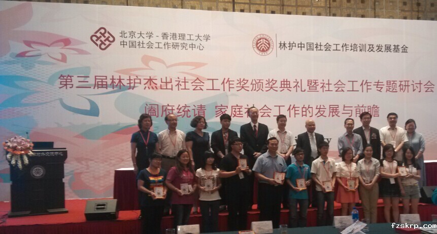 由香港理工大学应用社会科学系和北京大学社会学系联合举办、林护基金会资助的“第三届林护杰出社会工作奖颁奖典礼”于5月29日下午在北京大学举行。据悉,本届林护杰出社会工作奖颁奖典礼主要是将奖项颁发给杰出的社会工作学人、学生、社会工作实习项目及社会工作项目,以表彰他们在社会工作领域所做出的贡献。其中,社会工作学生奖共4人,我院学生洪佩经过导师费梅苹教授的提名,在众多申请人中脱颖而出,荣获此奖项。能获得评审委员会的认同,主要是由于洪佩同学对社会工作实践的高度投入感和反思精神,以及她在实践中研究与实务相辅相成的探索。