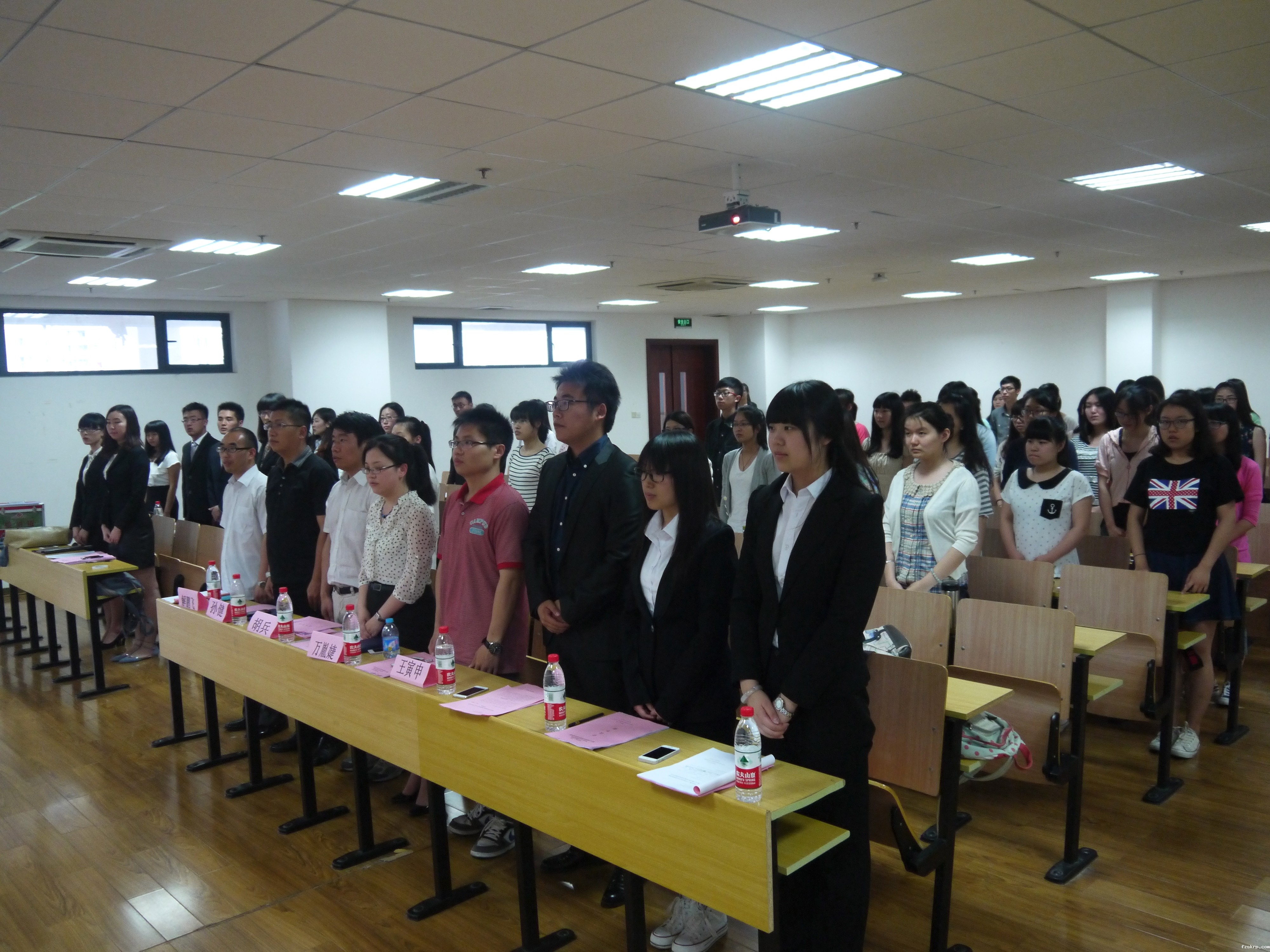 本着培养优秀的学生组织后备干部力量、打造和谐校园的宗旨,社会与公共管理学院于2014年6月18日晚在奉贤校区大活215隆重召开。校团委副书记胡兵、社会学院分党委副书记兼学工委主任万胤婕、学院分团委书记解鹏飞、11级辅导员王寅申、13级辅导员孙健出席了本次大会。社会学院各年级的学生代表50余人参加了本次会议。