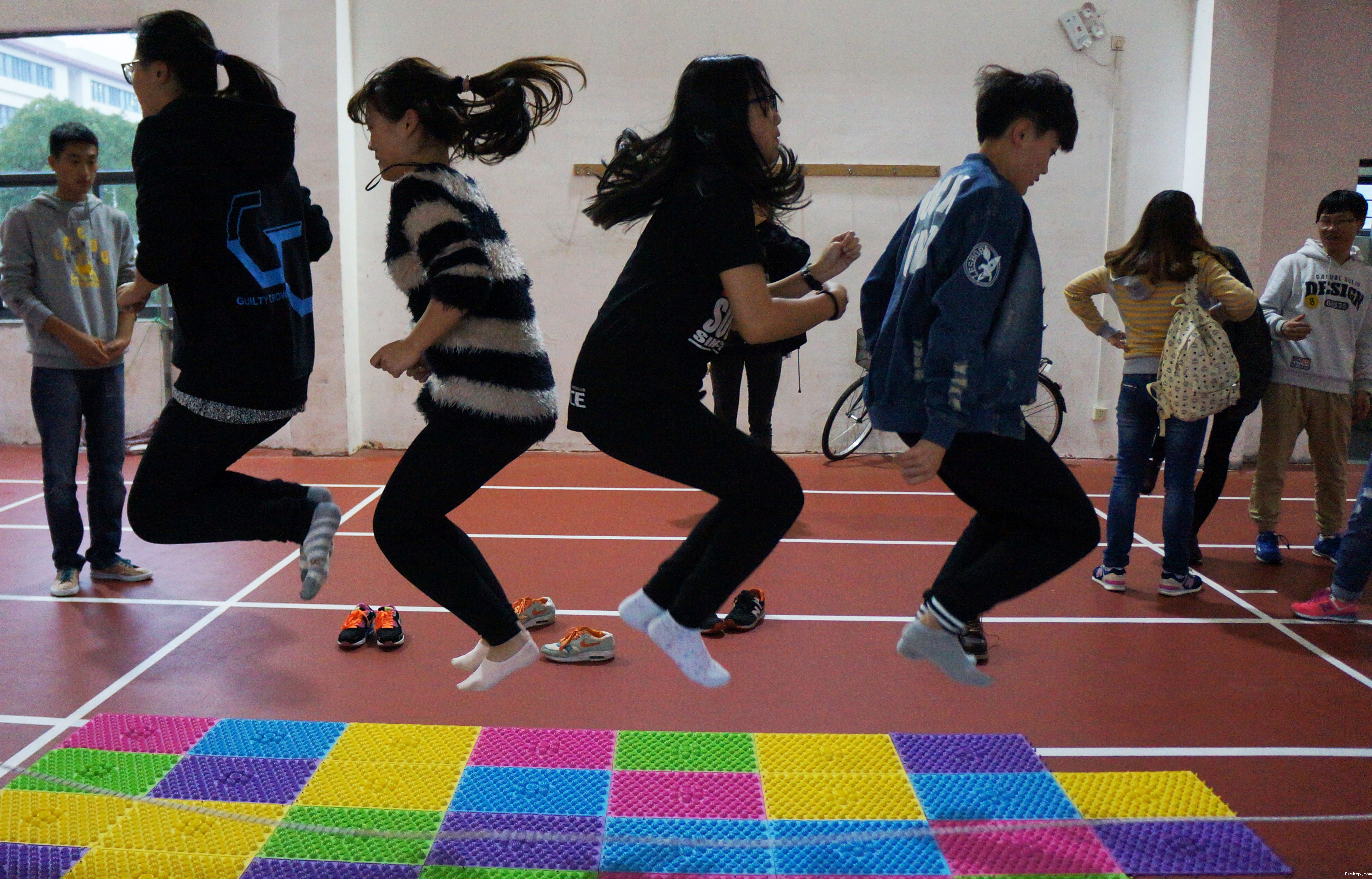 本次活动鼓励班级成员自主组队,形成6人团队参赛,每个团队设立队长和指挥员,设立“指压板”、“跳大绳”、“圈圈圈”、“踢鞋答题”等游戏环节,在答题环节中设置以“传统文化”为主题的题目,各参赛队累计积分,最终顺利完成全部游戏,全部队员在规定时间内赴大学生活动中心指定教室集合完毕且积分最高的团队获胜。
