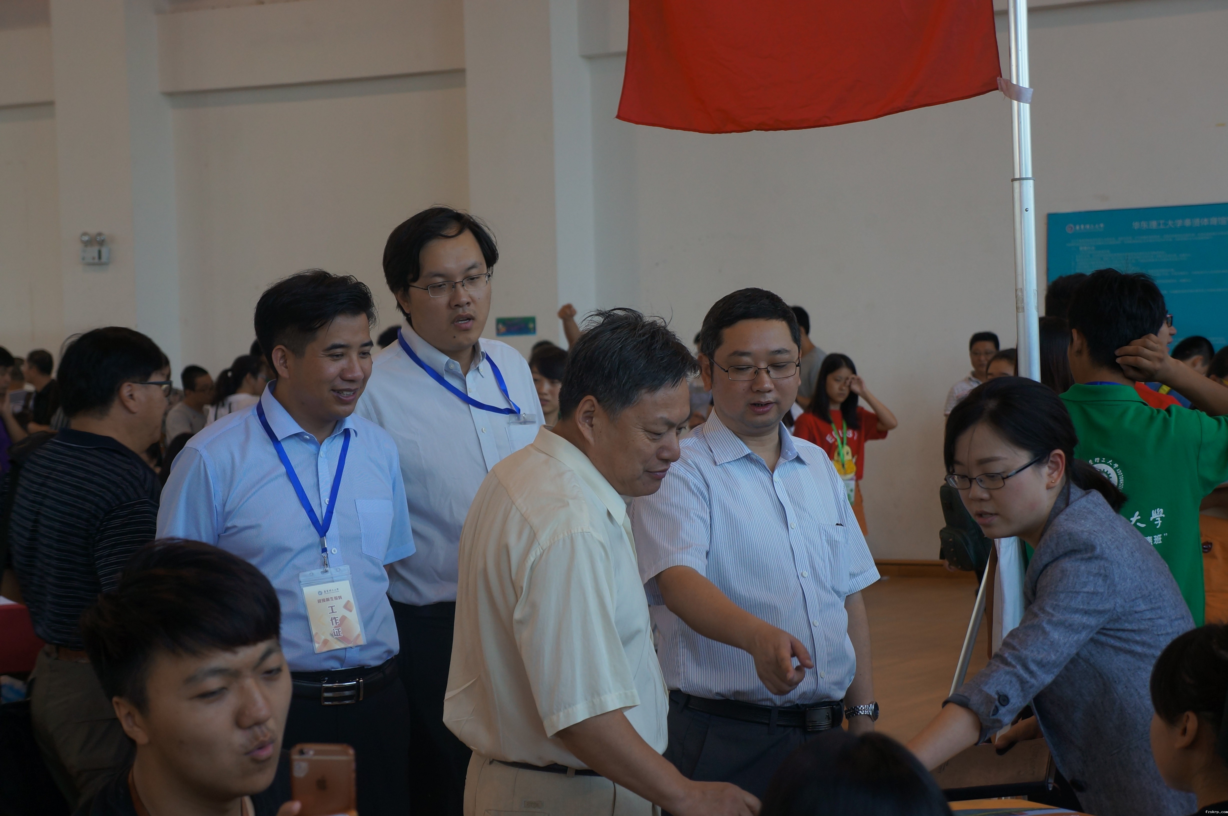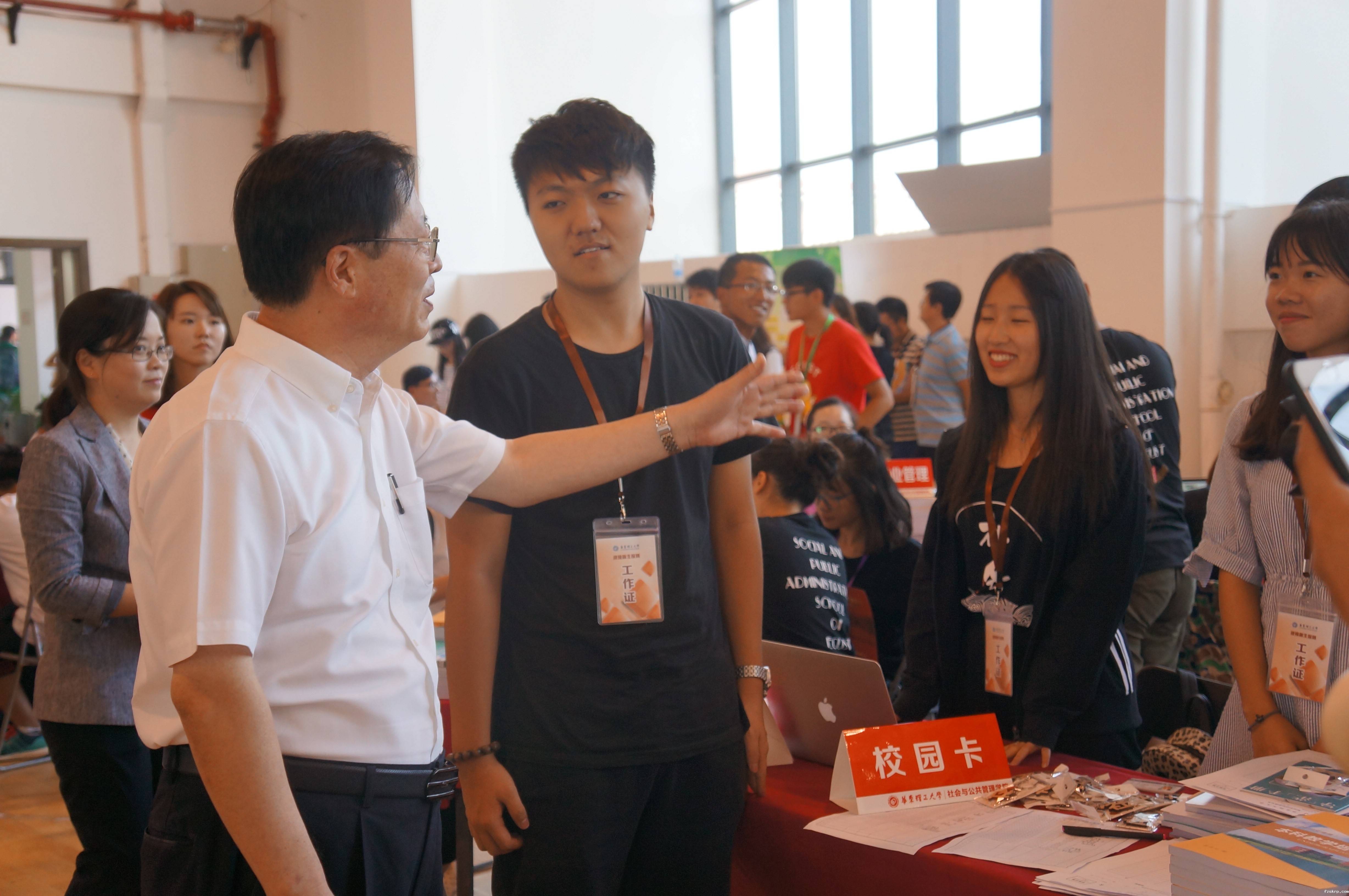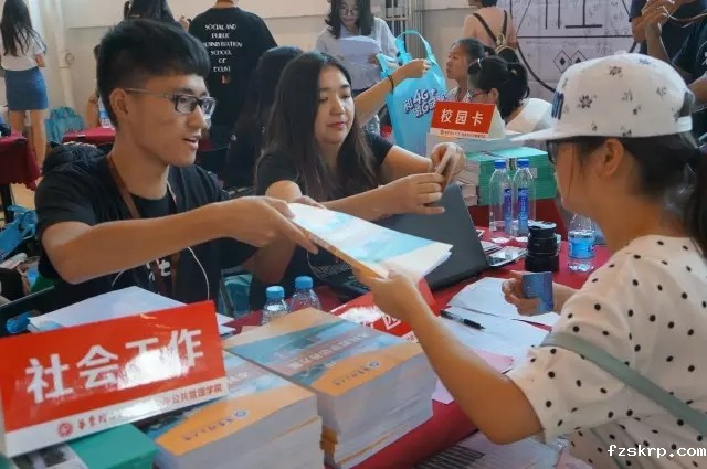 随后老师们和志愿者们帮助大家进行新生注册登记。各专业老师,学院领导和校长都抵达体育馆,现身报到现场,让新生们充分感受到华理的热情与温暖。之后,兴奋的新生们被邀请在学院的签名版上留下自己的名字,这是新生们进入社会与公共管理学院这个大家庭的纪念,也是这个大家庭对新生们的欢迎。