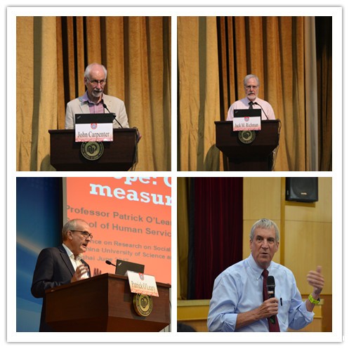 我校名誉教授,英国布里斯托大学的荣誉教授John Carpenter提出了“干预是否有效?”问题,认为判断干预是否有效要看其是否充分理解了服务人群面临的困难和不幸,是否有可信的解释模型,同时还需要有可靠的成本效益评估方法;随后他详细介绍了英国NSPCC协会针对儿童性虐待开展的“LettingtheFutureIn”项目如何通过多种评估方法证实了自身的有效性。我校名誉教授、北卡罗来纳州立大学教堂山分校的杰出教授Jack M.Richman认为干预的服务项目中文化情景的分析、受助对象的自我需求界定是非常重要的,同时在干预的资料搜集和实施中跨界合作、团队协作都是非常重要的。澳大利亚格里菲斯大学的Patrick O'Leary教授讨论了社会工作中“关系”和“希望”角色的重要性、以及如何测量,也简要地通过难民儿童保护、边缘儿童成长项目说明了“关系”与“希望”是如何发挥作用的。北卡罗来纳大学的Mark W .Fraser教授说明了社会工作在开展干预项目时,需要考虑不同服务对象的“深层结构”,以此调整其自身的干预活动。佛罗里达州大学教授、社会工作实践研究(社工届著名SSCI期刊)的主编Bruce Thyer介绍了社会工作干预研究中的随机对照试验设计技巧和注意事项,另外特别针对广大中国研究者说明了如何在有限的试验对象条件下,如何提升科学水准并检验其干预效果。随后Dr.Gearing、Dr.Torres、Dr.Acquati、Dr. Washburn分别对精神健康领域的服务、外国学生的疾病干预项目、癌症患者的依从性分析、青少年自杀行为干预的案例进行了介绍。