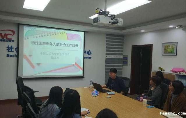 1019日下午,中国人民大学隋玉杰教授就《特殊困难老年人的社会工作服务》在智库会议室六教106作主题讲座。本次演讲由社会与公共管理学院院长何雪松教授主持,部分学生代表参加了此次讲座。