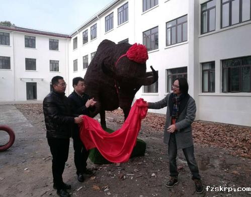 图为我院教师与海宁一行“头牛剪彩”仪式合影