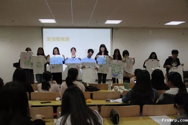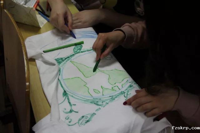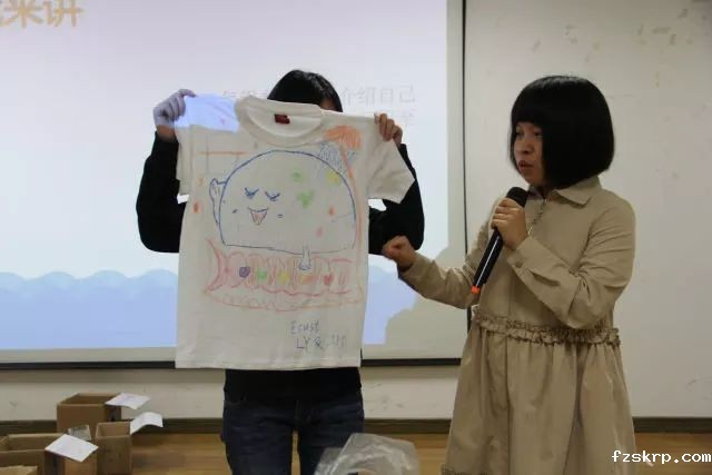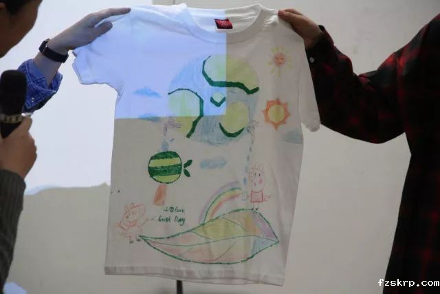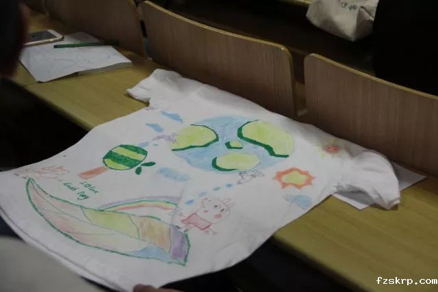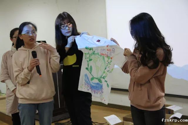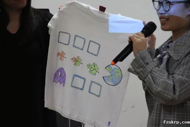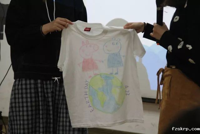 第一个环节是“彩衣我来画,知识我来答”。参赛选手们用20分钟的时间分别在一件全新的白T恤上画上与地球日相关的图案,每一件彩衣都各有特色。