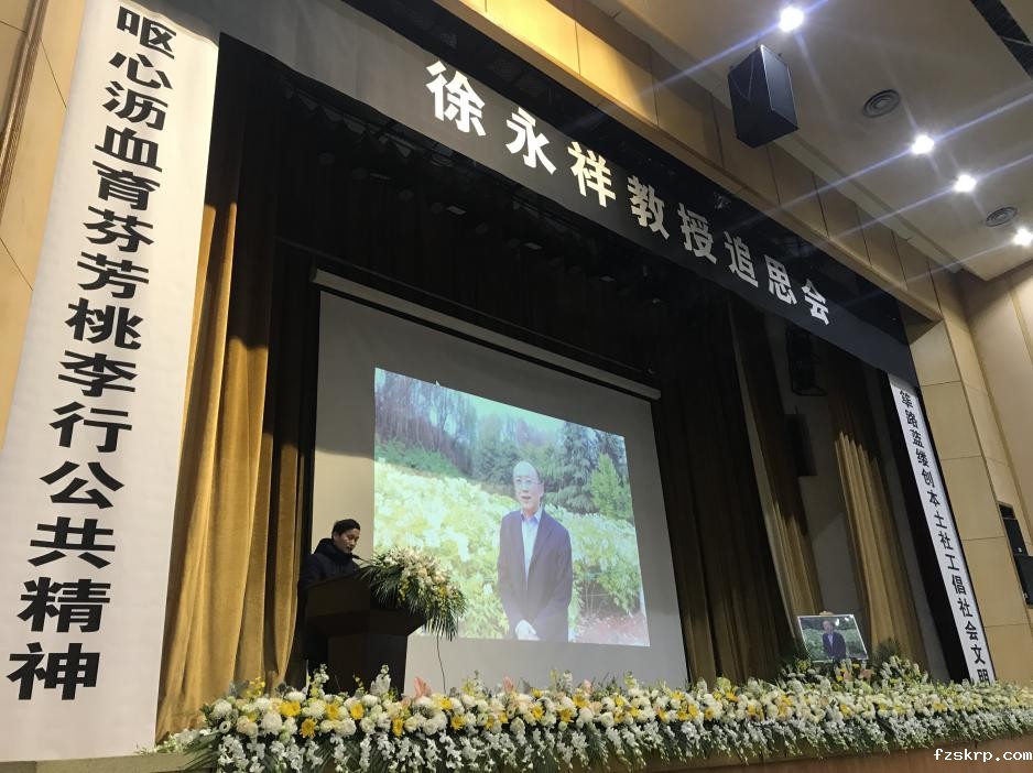 南京大学社会学院院长成伯清教授代表南京大学社会学院和南京大学哲学系表达了对徐永祥教授逝世的深深哀悼,并借徐永祥教授的四句题词:“理论联系实际,回应社会需求,发展社工专业,服务国家发展”,激励大家积极追寻徐永祥教授一生所坚守的“倡社会文明、行公共精神”的事业。