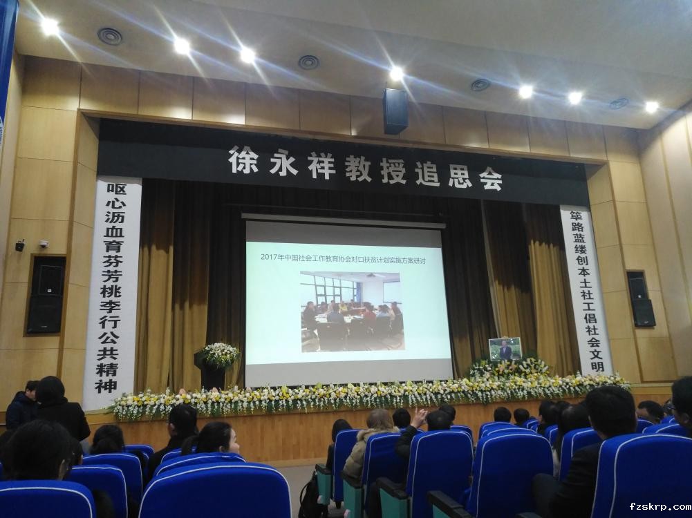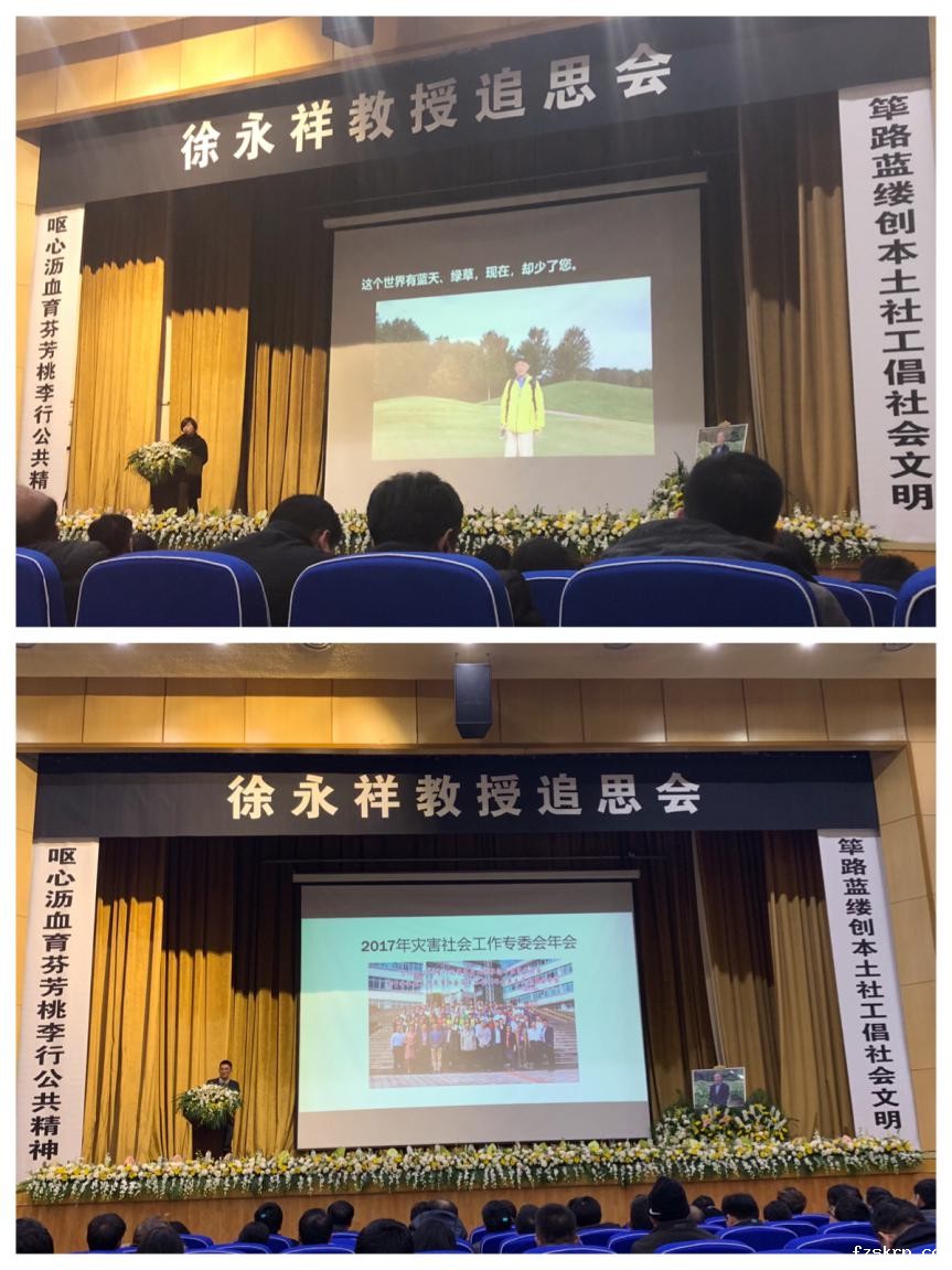 报告厅内,一副挽联垂挂于演讲台两侧,“筚路蓝缕创本土社工倡社会文明,呕心沥血育芬芳桃李行公共精神”,这是对徐永祥教授一生奉献教育、热爱学术、关怀社会的最好诠释。追思会开始前,屏幕上播放着徐永祥教授的生平视频,回溯了他生前上课教学、参会考察、日常生活以及奔波国内外大地的点点滴滴,勾起了无数人的记忆,也让世人更加立体地瞻仰了徐永祥教授光辉的一生。
