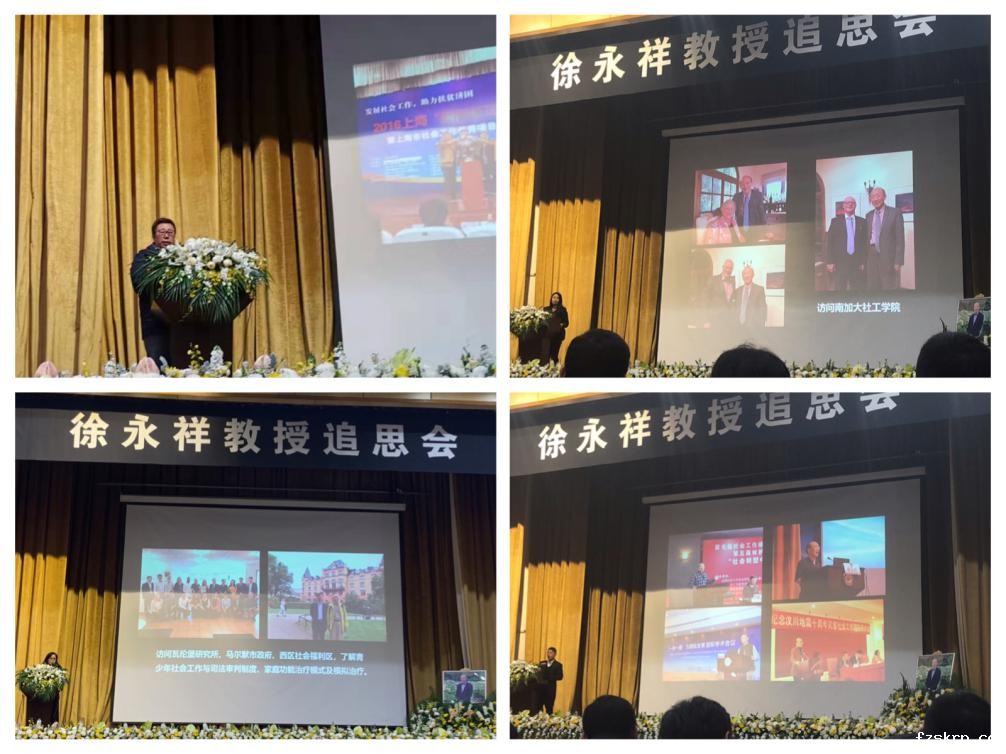 中国社会工作学会会长、北京大学王思斌教授代表中国大陆社会工作界全体同仁对徐永祥教授进行了追思。王教授认为:“徐永祥教授是中国社会学、社会工作恢复重建的重要开拓者,较早推动社会学、社会工作学科在一所理工科高校生根发芽,让华理社会工作在全国,甚至全世界都这么有名,徐永祥教授是第一人,他立下了第一功,再怎么肯定他的贡献都不为过”。王教授还高度评价了徐永祥教授在学术上的造诣及其在推动中国社会工作教育与实践相结合方面所做出的重要贡献,“他是一个真正的学者,积极推动中国社会工作教育协会的改革,提升社会工作研究水准,身体力行地指导全国社会工作的学科发展与专业建设,是助力中国社会工作教育与实务、理论与实践、研究与政策、国际与国内相结合的重要推动者、组织者”。