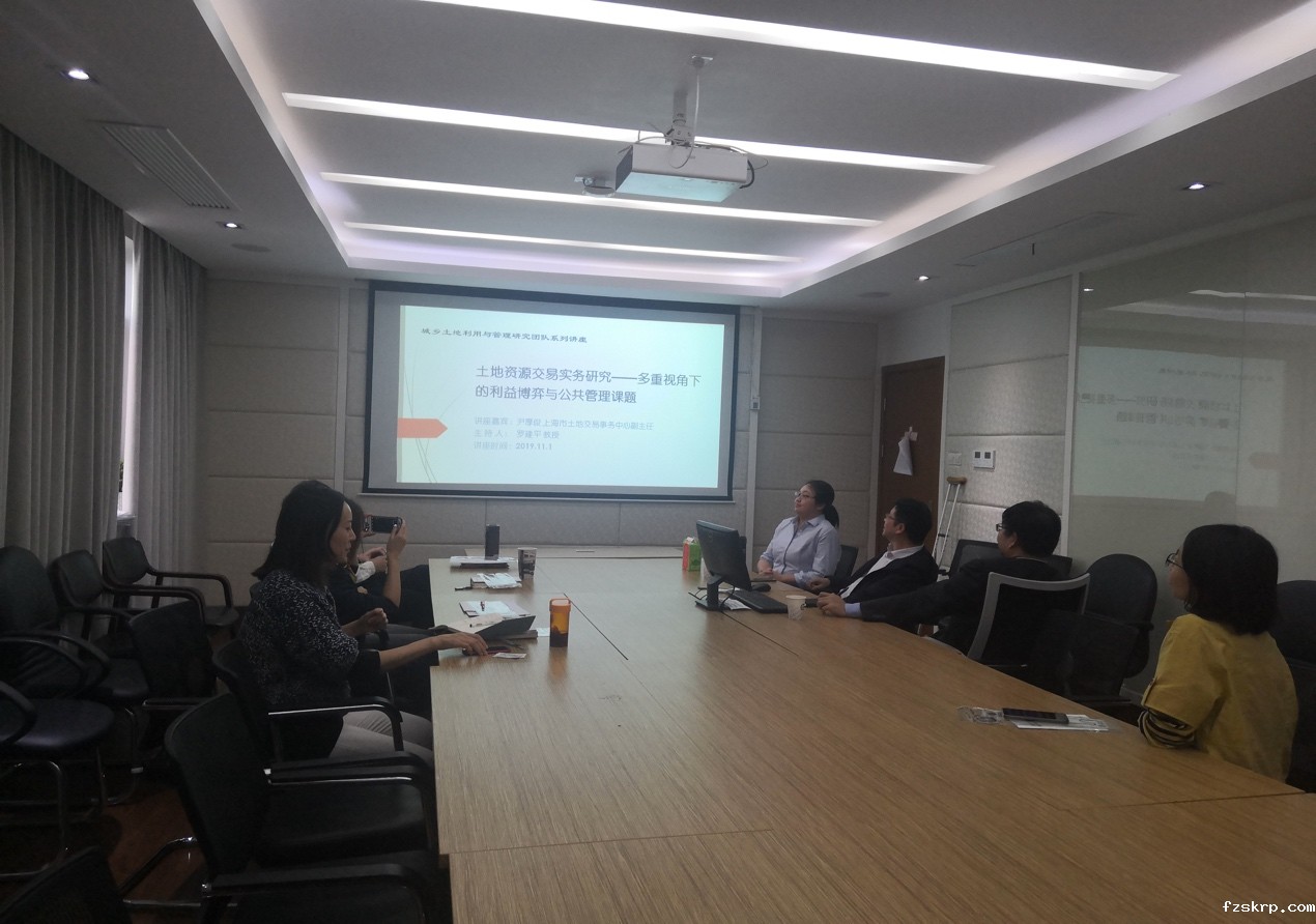2019年11月1日星期五下午1点30分,社会与公共管理学院公共政策研究所、城乡土地利用与管理研究团队联合邀请了上海市土地交易事务中心副主任、全拍卖师协会副会长尹厚俊主任,做了题为《土地资源交易实务研究——多重视角下的利益博弈》的讲座,由罗建平教授主持,讲座在学院324会议室举行。