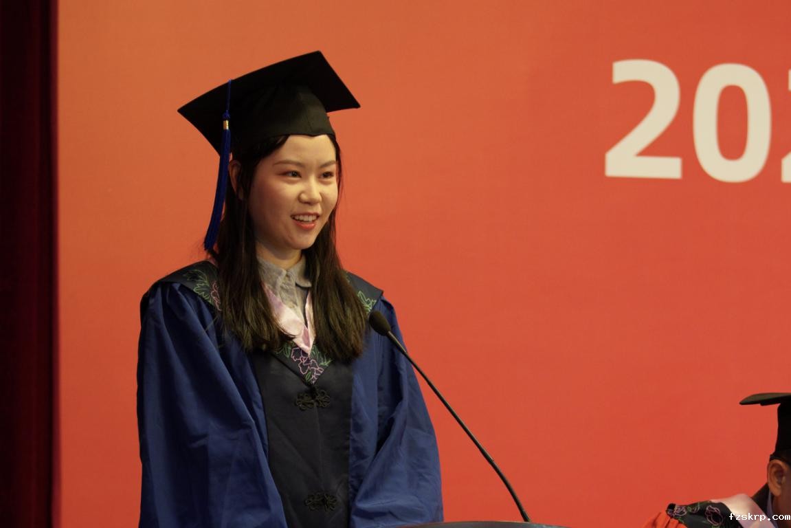 随后,研18级社会保障毕业生韦悦作为毕业生代表发言,她回首了过往两年半的研究生求学经历,凌晨两点的华理成为了她最温暖的一段回忆,与社院学子共同努力的日子让她感觉自己不是孤军奋战的,华理浓厚的学术氛围正是因为大家的陪伴而带有了一丝人情味。她对自己两年半来的收获作了总结,并对老师两年多来的付出表达了衷心的感谢。发言的最后,韦悦同学对全体毕业生进行鼓励,希望大家能够继续以严谨科学、坚持坚韧的态度,在各行各业积极建设,发光发热,同时,也对诸位老师、同学及华理社院送上了真诚的祝福。