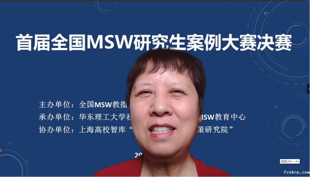 首届全国MSW研究生案例大赛由全国MSW教指委主办,学院MSW教育中心承办,上海高校智库“社会工作与社会政策研究院”协办。大赛自去年9月份启动以来,先后共进行了三轮比赛:第一轮的初赛采用“通讯评选”的方式,邀请各培养单位推荐的评审专家,评选出百强案例;第二轮的复赛同样采用“通讯评选”的方式,邀请全国MSW教指委委员担任评审专家,评选出三十强案例;第三轮的决赛采用“线上问辩”的方式,邀请全国MSW教指委委员担任评审专家,评选出大赛一等奖、二等奖和三等奖。