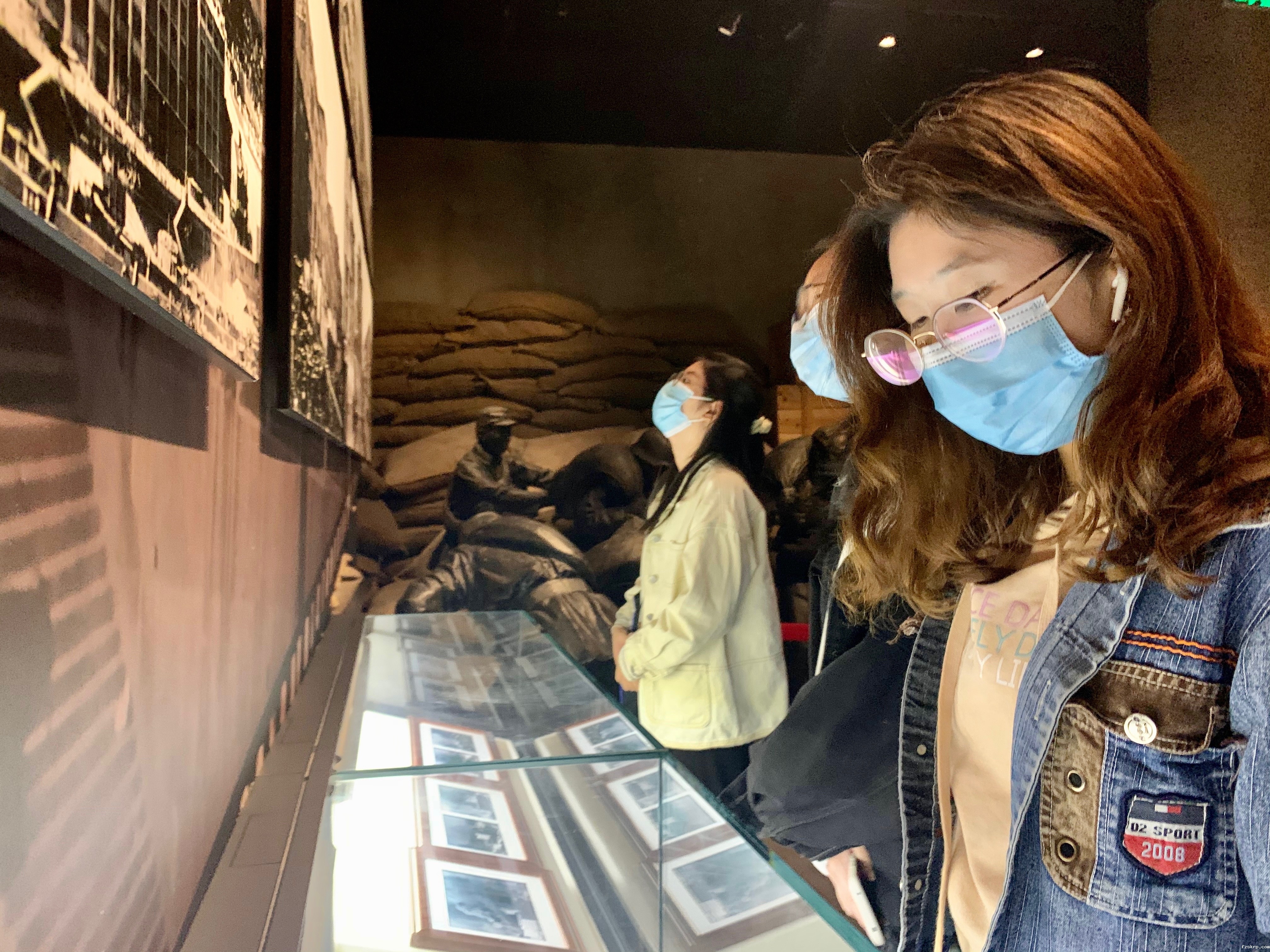 四行仓库纪念馆内通过制作精良的展品与展板、按照真人大小设置的战斗蜡像群,全方位再现了中国人民投身全民族抗战、共御外敌的历史事实,生动展现了以谢晋元为首的“八百壮士”舍家为国、不畏牺牲的民族气节。党支部同志们依次参观了“血鏖淞沪”、“坚守四行”、“孤军抗争”、“不朽丰碑”等主题展览陈列,对不朽的抗战精神有了更为深刻的理解。
