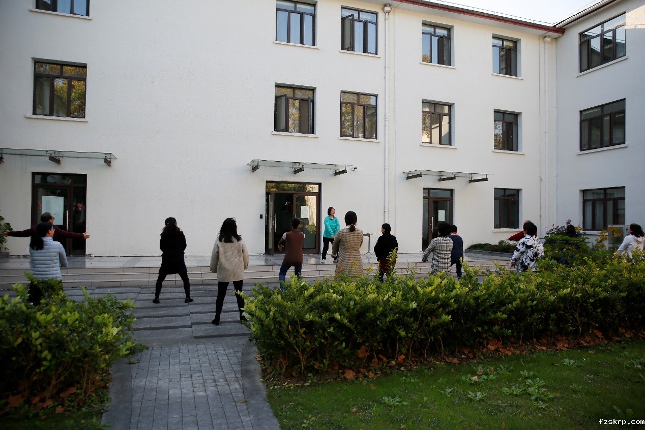 俞楠、郭圣莉两位老师主动担当教练。八段锦倡议受到老师们的欢迎,并逐渐发展为常态。参与八段锦的老师表示:“每天伏案时间长,又缺乏运动,极易引发颈椎、腰椎及肩周炎等慢性病。八段锦不但能舒展一下身体,还能正气提神更好地投入工作。”