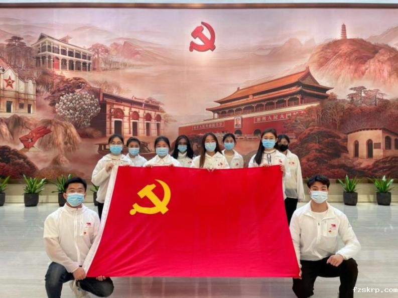 在一天的志愿服务工作结束后,在宣誓厅内中国共产党党旗前,支部党员们一同高举右拳,重温入党誓词。一句句铮铮誓言更加坚定了党员们为人民服务的初心和信念。