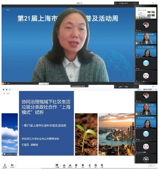2022年10月18日,第21届上海市社会科学普及活动周系列讲座第一讲在线上顺利举行。bet韦德地址副教授石超艺老师作为主讲嘉宾为师生做了题为“协同治理视域下社区生活垃圾分类的政社合作‘上海模式’试析”的科普讲座。本次讲座由伟德下载官网安装app主办、bet韦德地址承办,由社会与公共管理学院行政管理系主任牛星副教授主持。