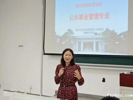 公共事业管理专业宣讲活动中,公共政策系副系主任方学梅老师从公共事业管理专业的定义、专业必修课以及未来方向三个方面介绍了公共事业管理专业,鼓励大家“不要争做成功的人,要努力去做有价值的人”。