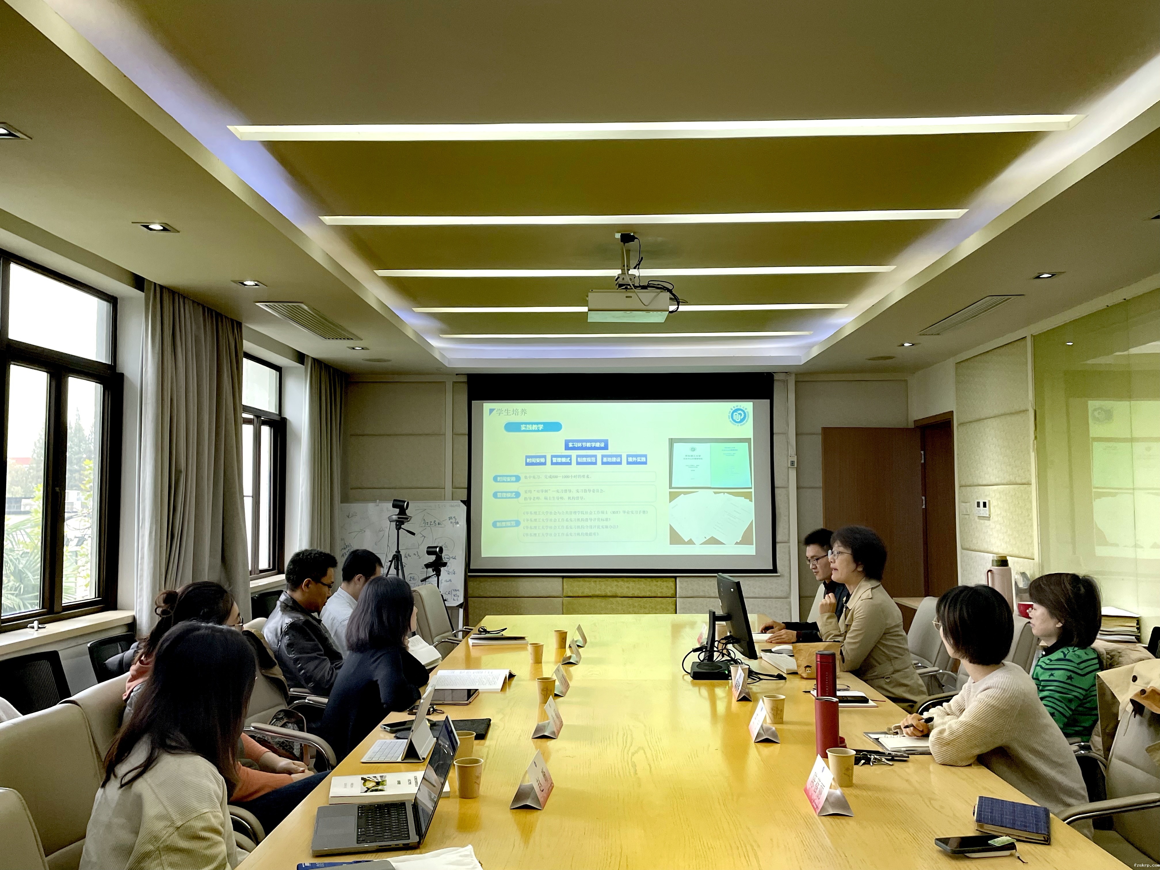 首先,朱眉华教授对谢立黎主任一行表示热烈欢迎,接着,徐选国、陈蓓丽分别介绍了伟德下载官网安装app社会工作专业发展状况、师资队伍建设和专业实习实践制度建设与运行,王宁老师分享了党建引领专业发展、学生培养以及教学实践基地合作共建等方面的经验。随后,双方教师就社会工作一流专业建设、课程设置,尤其是专业实习实践版块进行了深入交流,我院社会工作实习采取实习委员会制度,按照四大方向进行集中与分散督导相结合的制度设置受到人大同行教师的积极认同。双方还就专业实践基地建设与评价、行业优秀校友参与课程教学与人才培养、非全日制MSW培养经验等方面进行了深入交流。