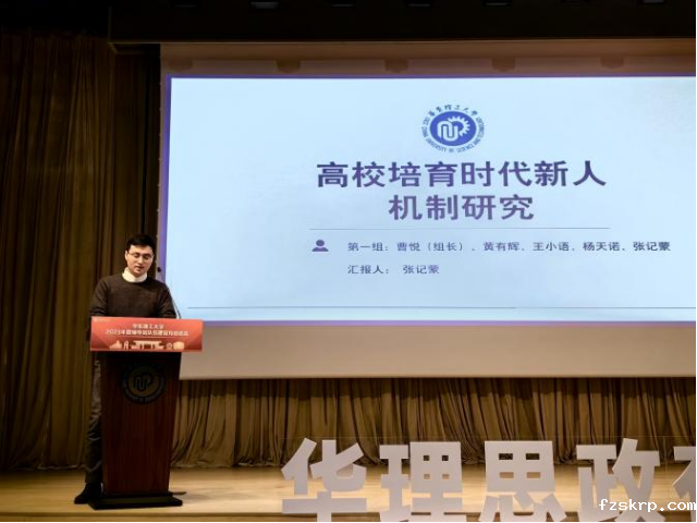 在本次建设月颁奖典礼现场,学院辅导员张记蒙作为伟德下载官网安装app“行动学习”骨干辅导员研修营小组代表,做“高校培育时代新人机制”研究汇报。汇报从研究的背景与意义、思路与方法、数据与结论、路径建议四个部分深入分析了当代青年政治认同、价值观、学习观、生态观以及身心体素质等5个测量维度的典型事例。