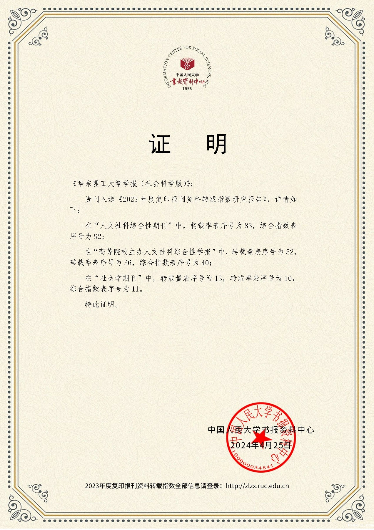 中国人民大学书报资料中心同时发布了《2023年度复印报刊资料转载指数研究报告》,共有570种学术期刊、127家高等院校、12家社科院(联)等入选《2023年度复印报刊资料转载指数研究报告》。《伟德下载官网安装app学报(社会科学版)》入选转载指数研究报告,并在各项转载指数排行中位居前列,在“人文社科综合性期刊”中,转载率排名为第83名,综合指数排名为第92名;在“高等院校主办人文社科综合性学报”中,转载量排名为第52名,转载率排名为第36名,综合指数排名为第40名;在“社会学期刊”中,转载量排名为第13名,转载率排名为第10名,转载指数排名为第11名。