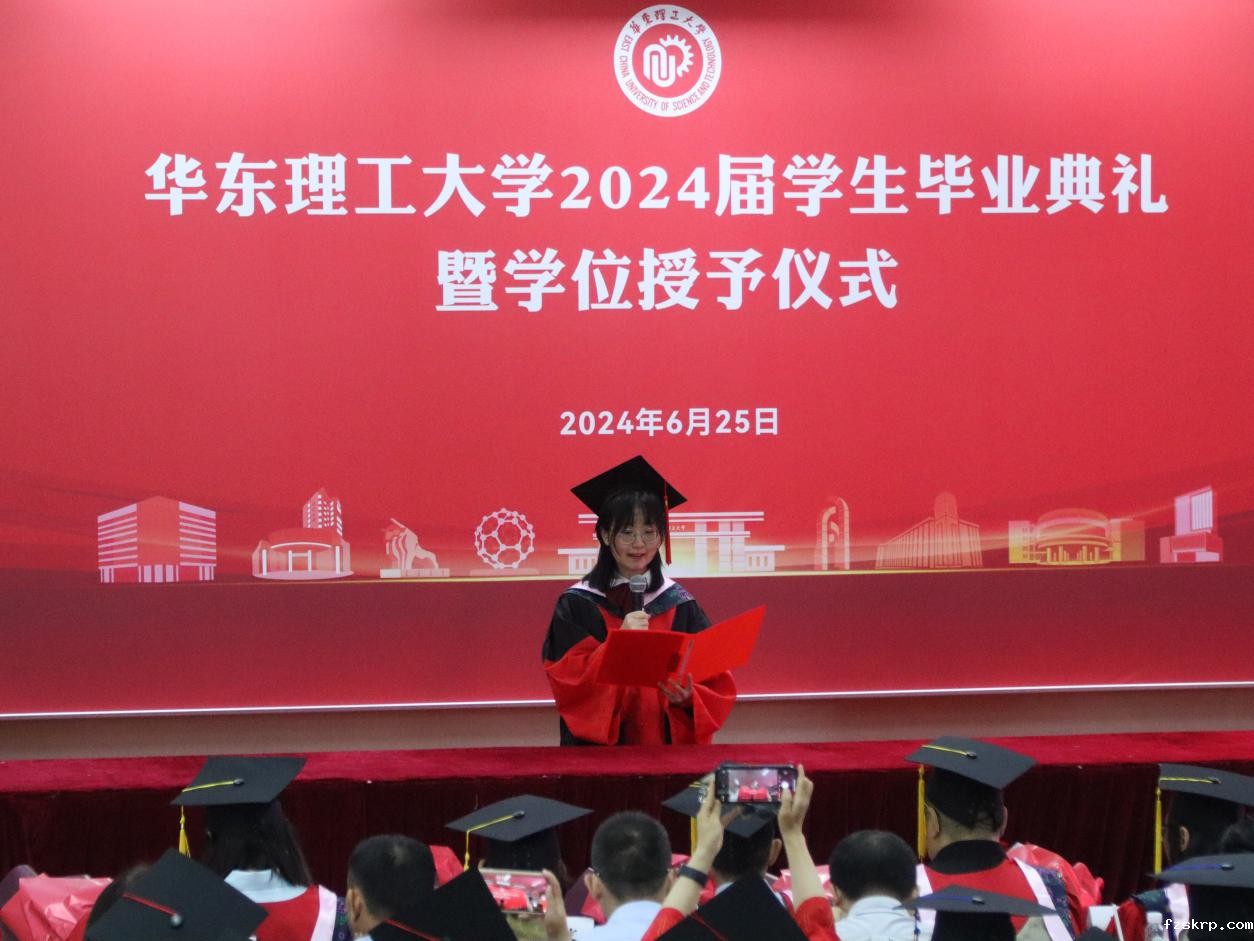 伴随着雄壮的国歌声响起,毕业典礼正式开始。“作为新时代的华理青年,我们生逢其时,重任在肩。我们要坚定不移地听党话、跟党走,胸怀祖国,服务人民。”毕业生们以青春的名义进行《青春有为》毕业宣言。大家必将踔厉奋发、砥砺前行,在建设中国式现代化的火热实践中绽放绚丽之花。