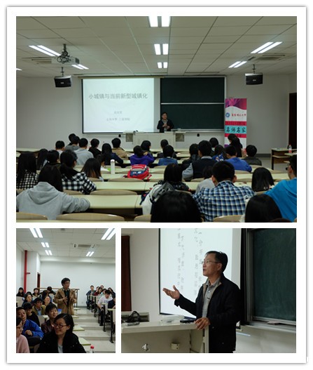 2014年11月10号18点,社会与公共管理学院有幸邀请到了上海大学社会学院社会学系教授,博士生导师,海南大学三亚学院教授,海南大学三亚学院副院长兼社会与发展学院院长沈关宝先生来为我们做这场讲座—“小城镇”与当前的城镇化。讲座尚未开始,慕名而来的同学已坐满了奉贤校区C教402教室,讲座由社会与公共管理学院副院长纪晓岚教授主持。